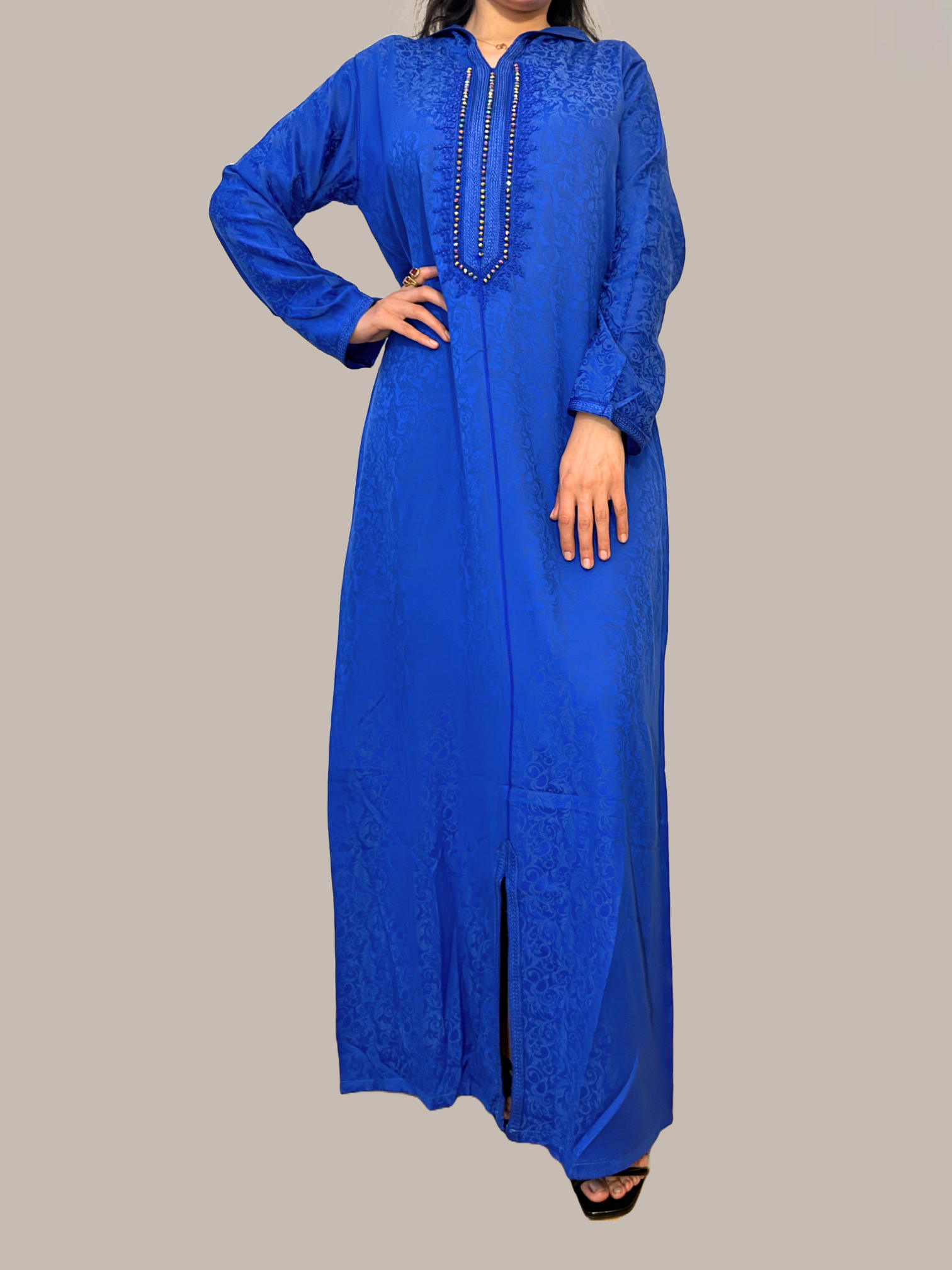 Affirmez votre style avec cette djellaba bleue, symbolisant la passion et l’audace.